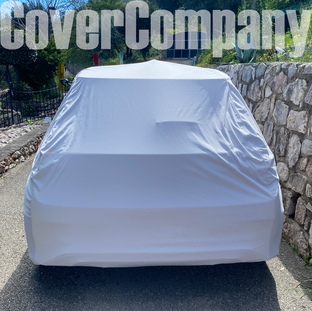 Si aparcas tu coche a la intemperie, nuestra funda exterior a medida (ver aquí el modelo exterior) proporciona un escudo completo contra la lluvia, los rayos UV, el polvo y las heladas.